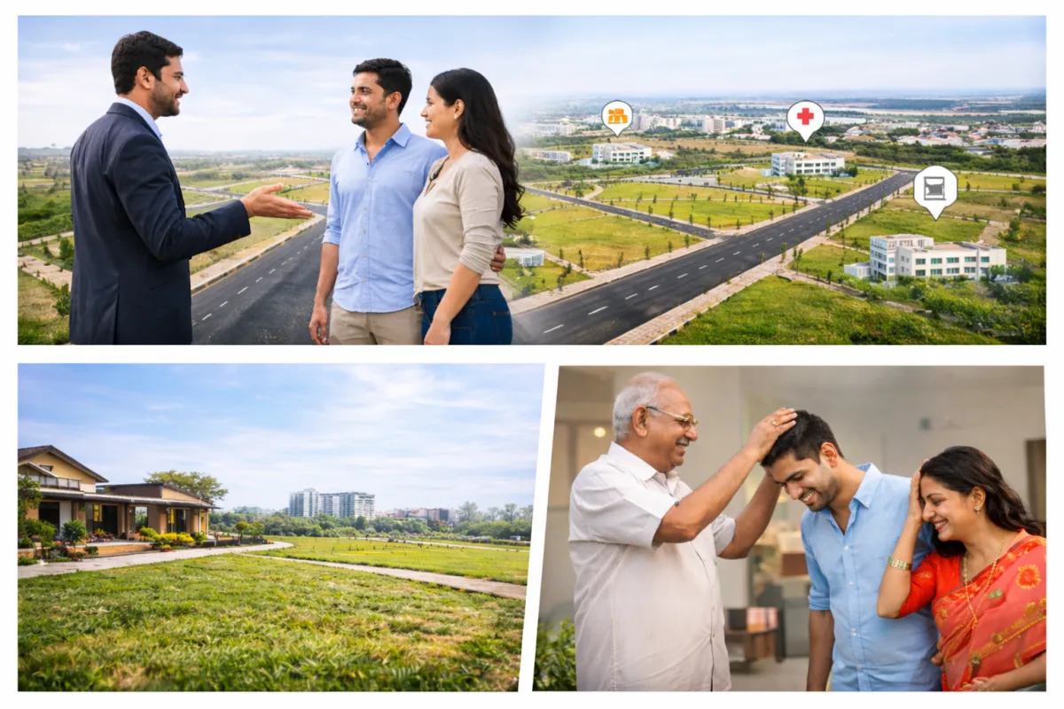 సైట్ విజిట్ ద్వారా మీరు ప్లాట్ లొకేషన్, రోడ్లు, ఇన్ఫ్రాస్ట్రక్చర్, మరియు పరిసరాలను ప్రత్యక్షంగా చూసి సరైన నిర్ణయం తీసుకునే స్పష్టత పొందుతారు.